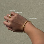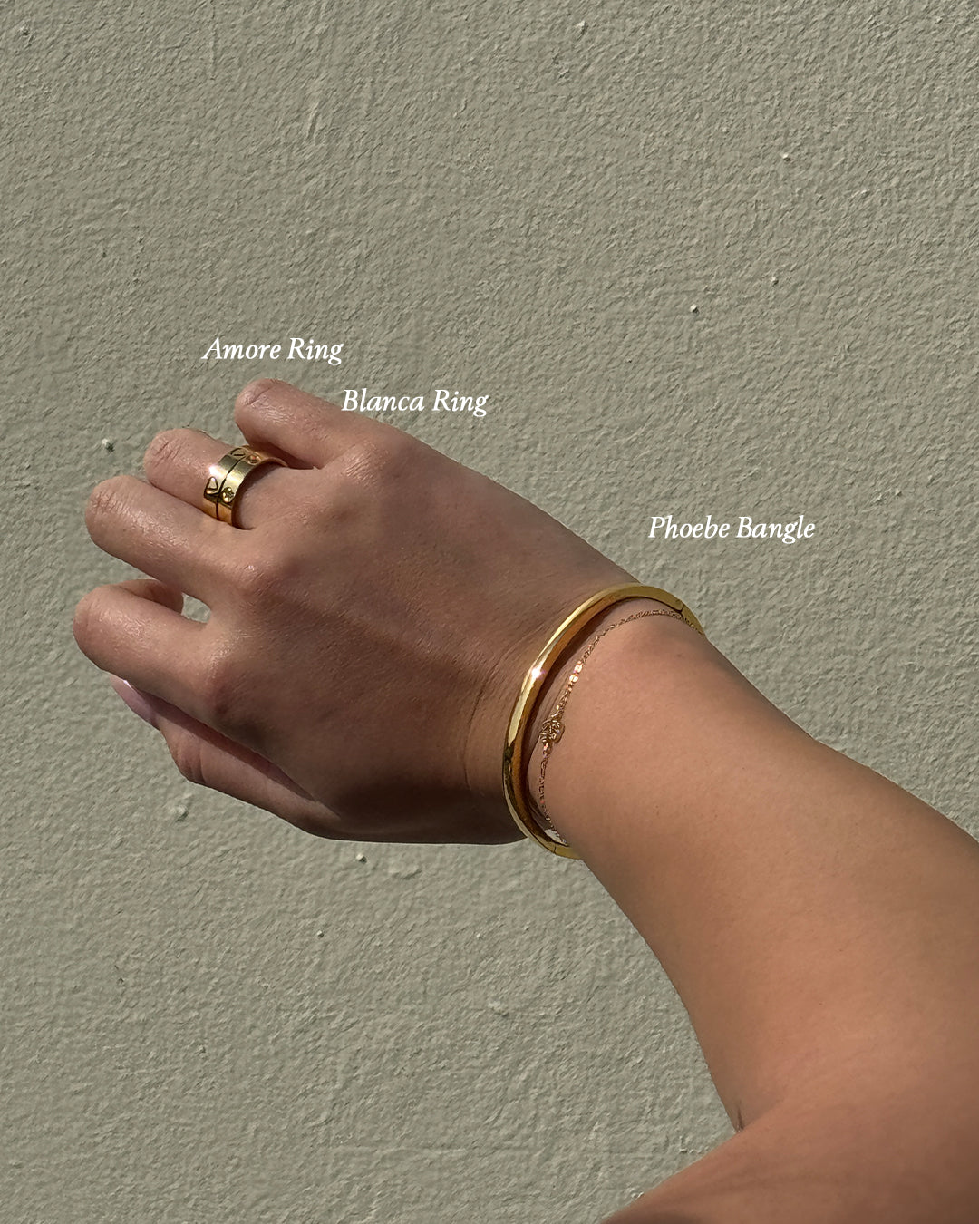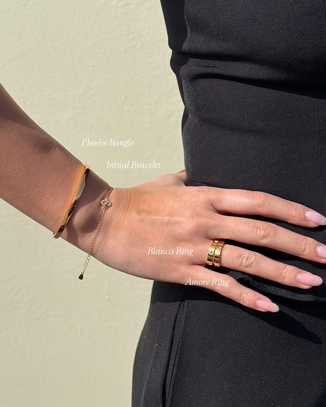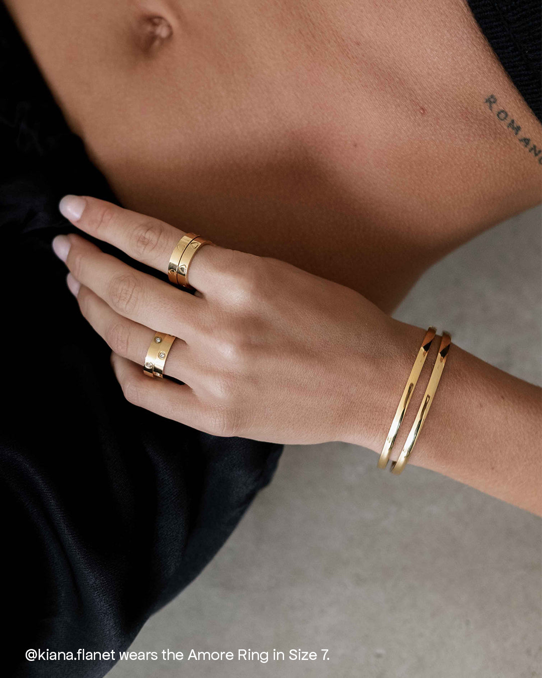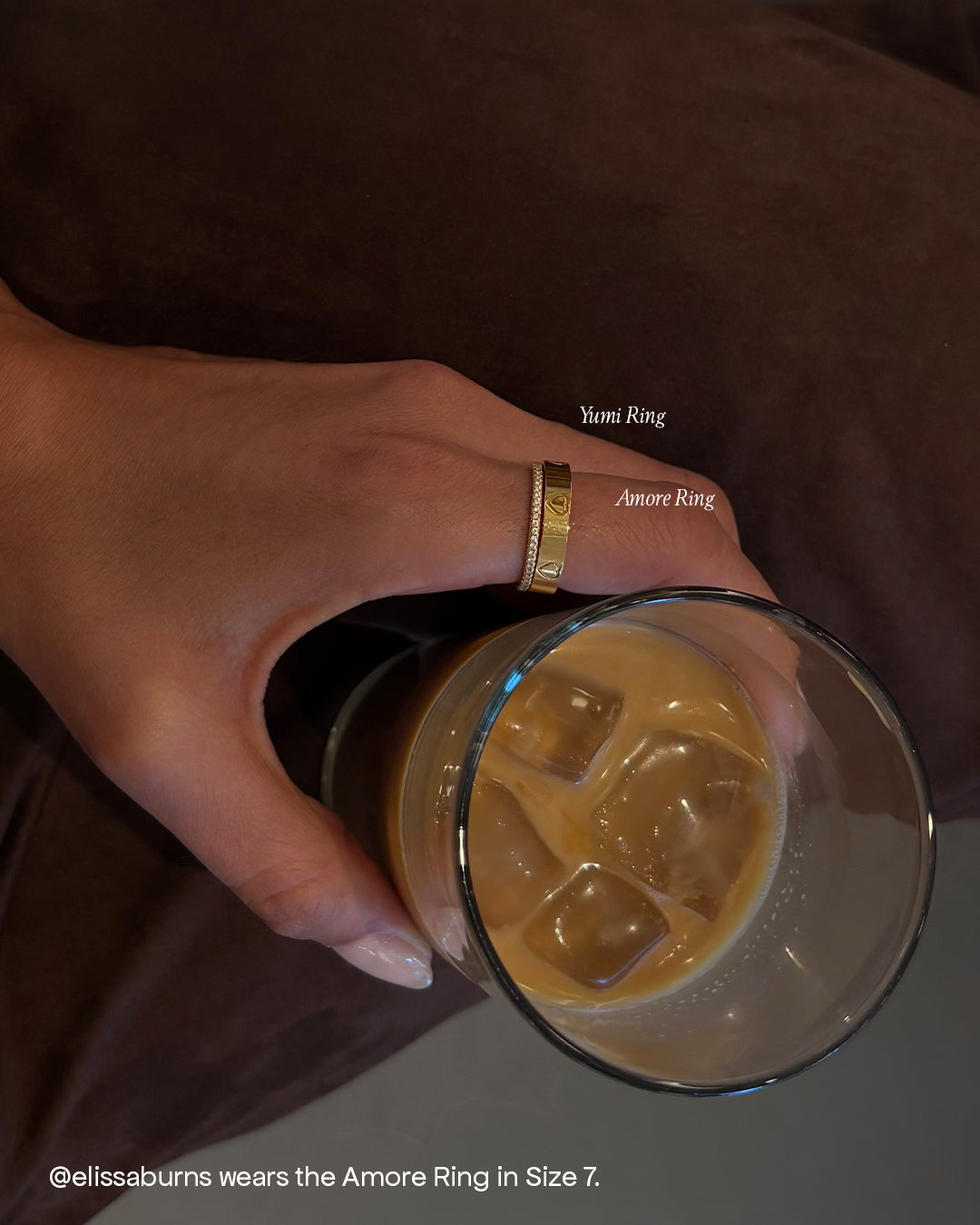 A minimal band with a romantic twist. Engraved with tiny hearts and finished with a high polish, it’s hard not to notice. Waterproof & skin-friendly, it's cute on its own or stacked, and even cuter as a gift.
