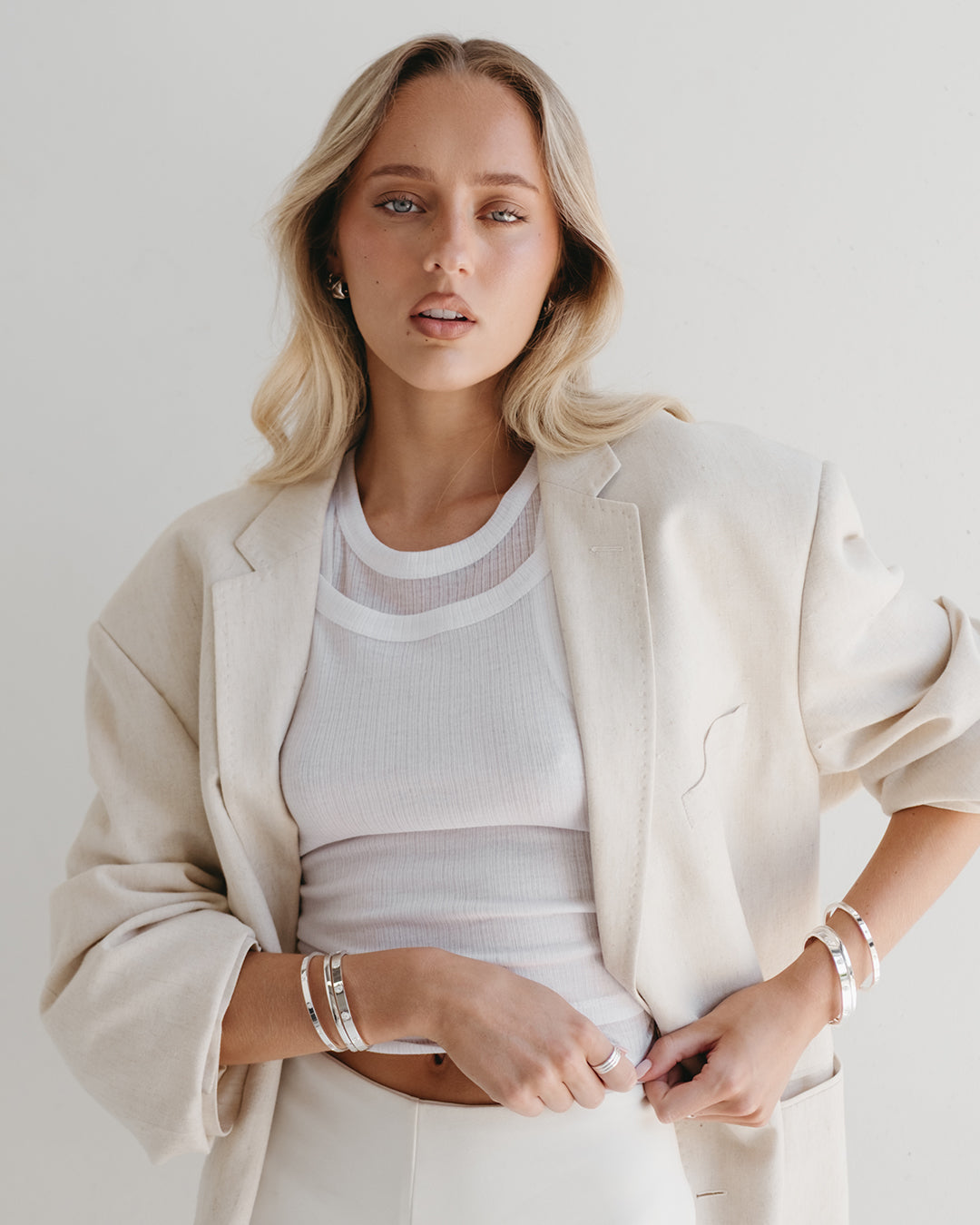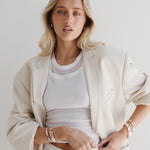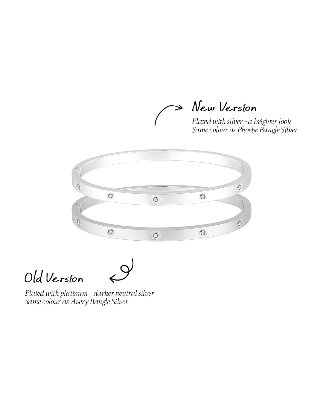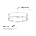 Introducing the Blanca Bangle Thin Band Silver NEW VERSION. A timeless staple, now in a brighter, silver-plated finish just like our community favourite, the Phoebe Bangle Silver. Created by popular demand, this refreshed design features a crisp white-toned silver that flatters every skin tone. Waterproof, tarnish-resistant, and designed for daily wear, it’s made to sit comfortably whether worn solo or stacked.