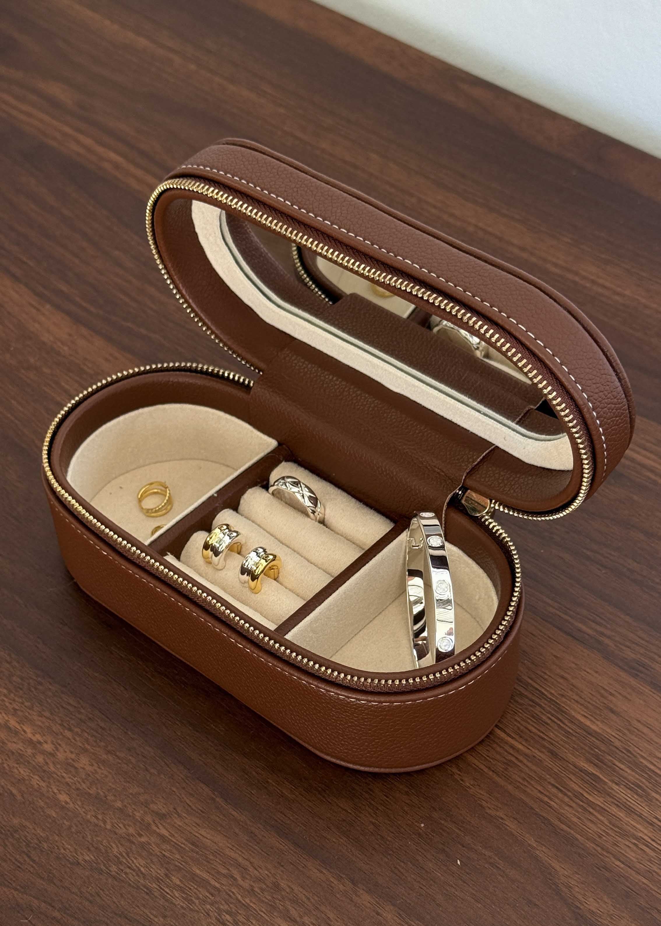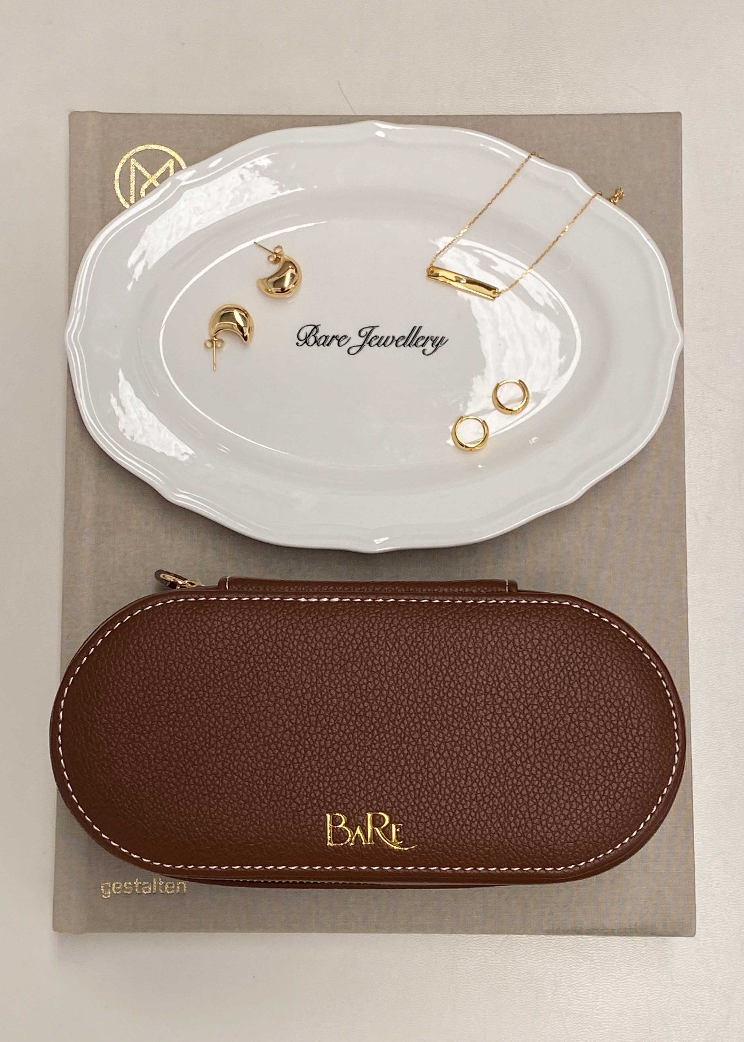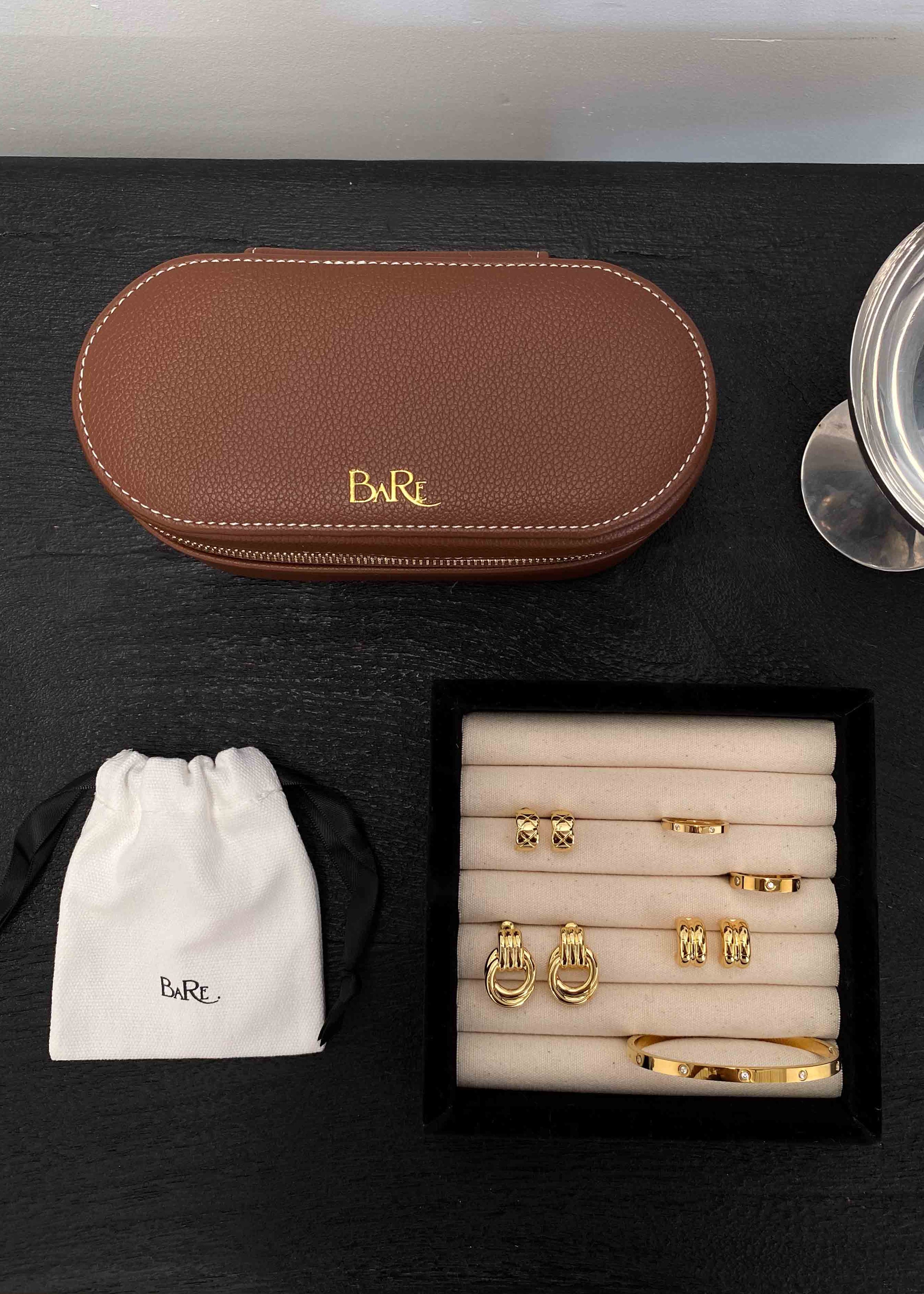A refined way to store all your beloved Bare pieces. Designed for both on-the-go style and elevated home décor. Crafted from luxe vegan leather, this travel case keeps your essentials protected and beautifully organised with dedicated compartments and a built-in mirror for touch-ups wherever you are.