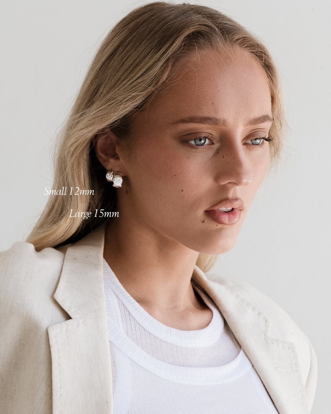 Chic, structured, and endlessly wearable. The Kelly Hoops bring our signature criss-cross design to your everyday look. Available in two sizes: mini for a subtle stack, and original for a slightly bolder statement. Pair them with sunnies or elevate your daily outfits.