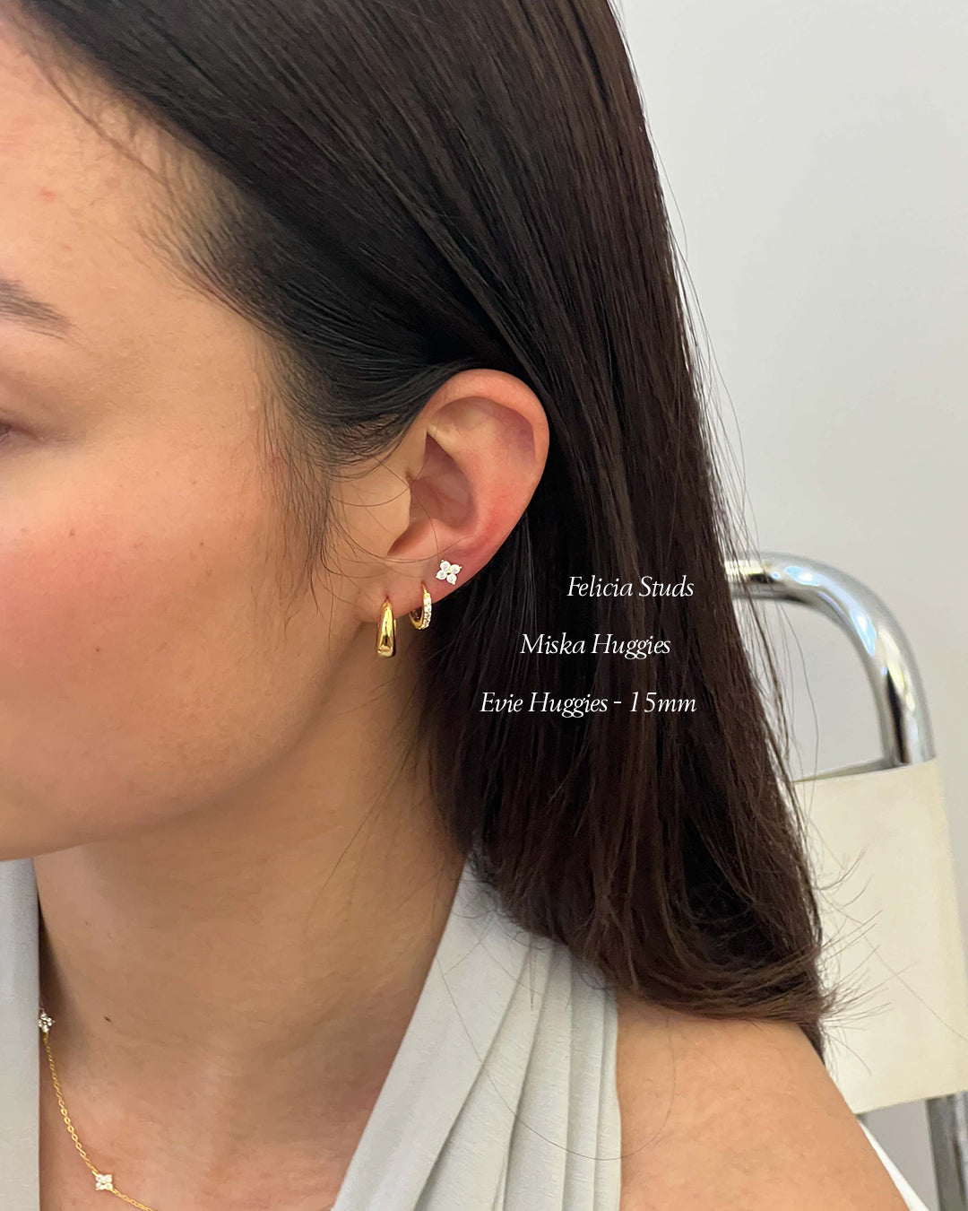 The Miska Huggies are your everyday go-to, from the gym to errands, work to weekends. Waterproof, lightweight, and finished with a single row of gemstones for subtle shine. Understated on their own, easy to layer, and never out of place.