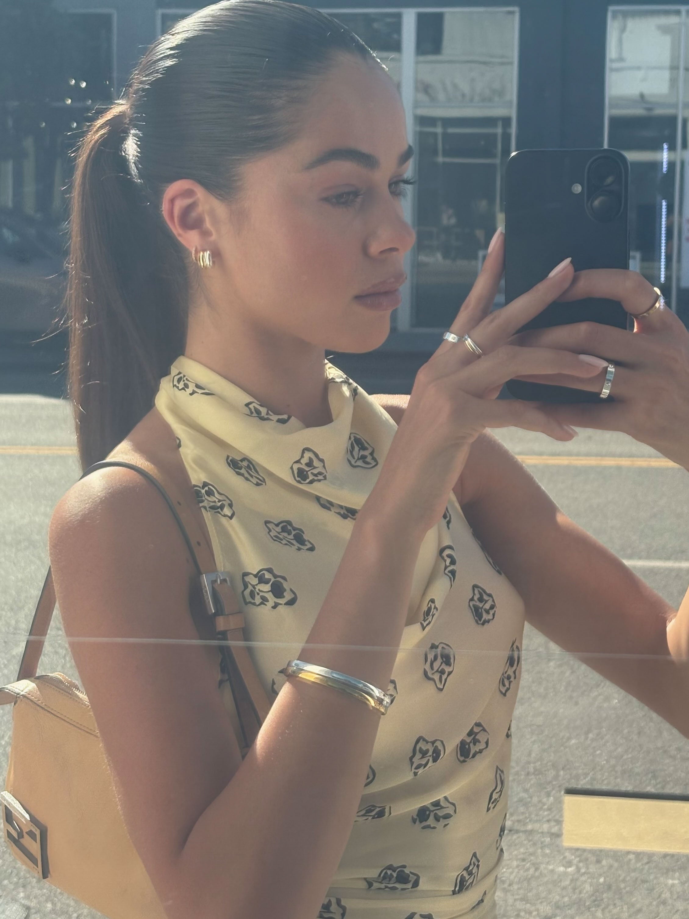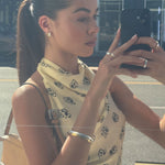 Designed to be lived in, the Phoebe Bangle is your go-to from 9–5 to weekend plans. Its oval shape sits comfortably on the wrist, whether worn solo or stacked. Waterproof, tarnish-resistant, and effortless to style. It’s the kind of piece you’ll reach for daily and gift without second-guessing.